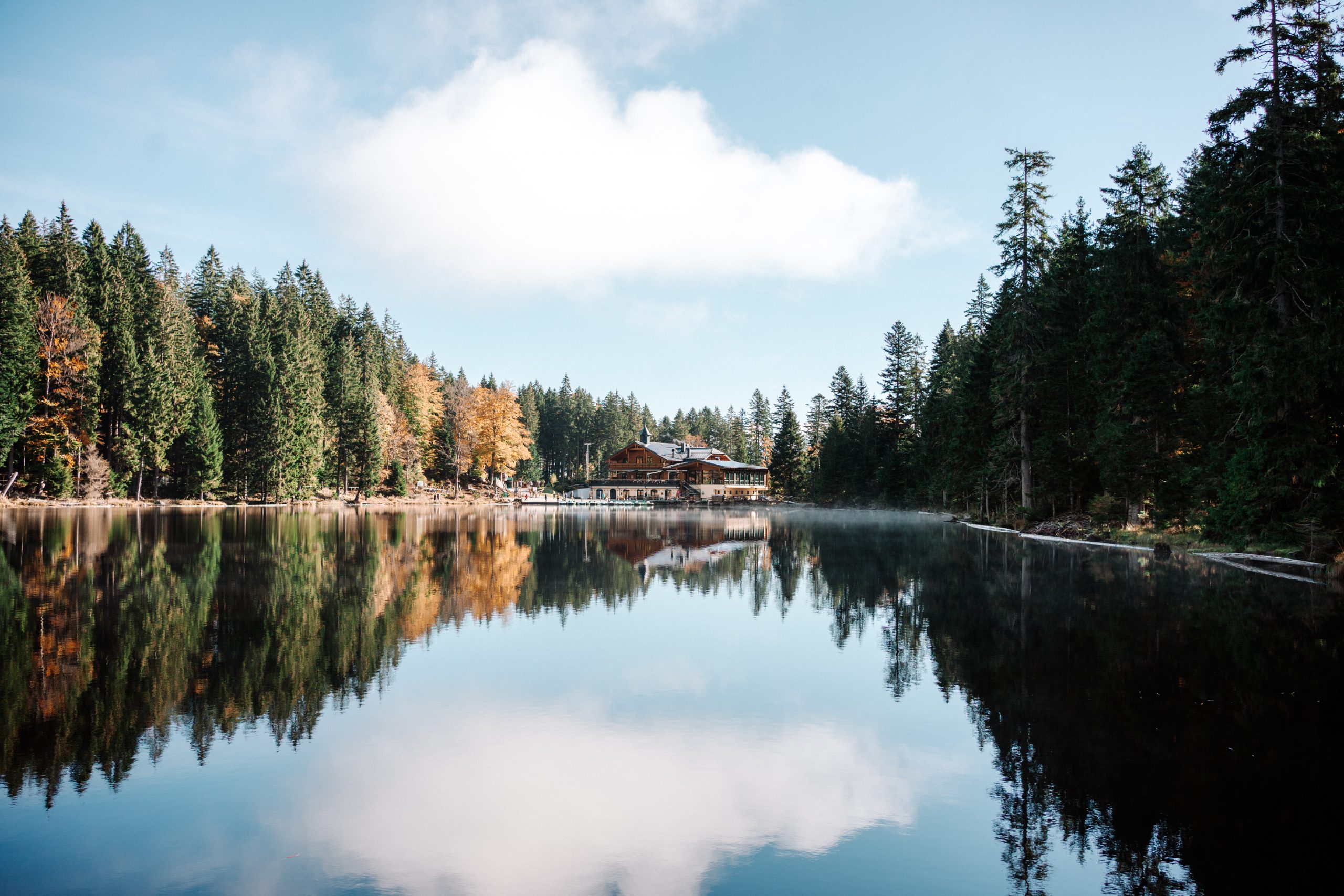 Für Montag war das beste Wetter vorhergesagt – Sonne und blauer Himmel. Daher planten wir eine Wanderung auf den Großen Arber. Wir fuhren gegen 10 Uhr los und unser erster Stopp war der Große Arbersee. (Link)